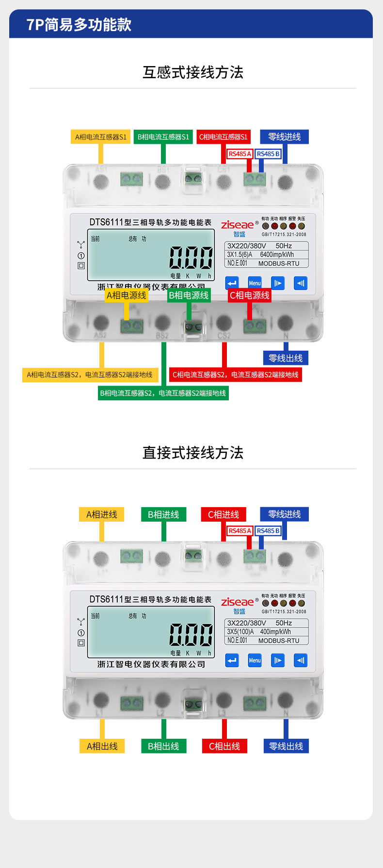 DTS6111、DSS6111型三相導軌式簡易多功能電能表(7P)